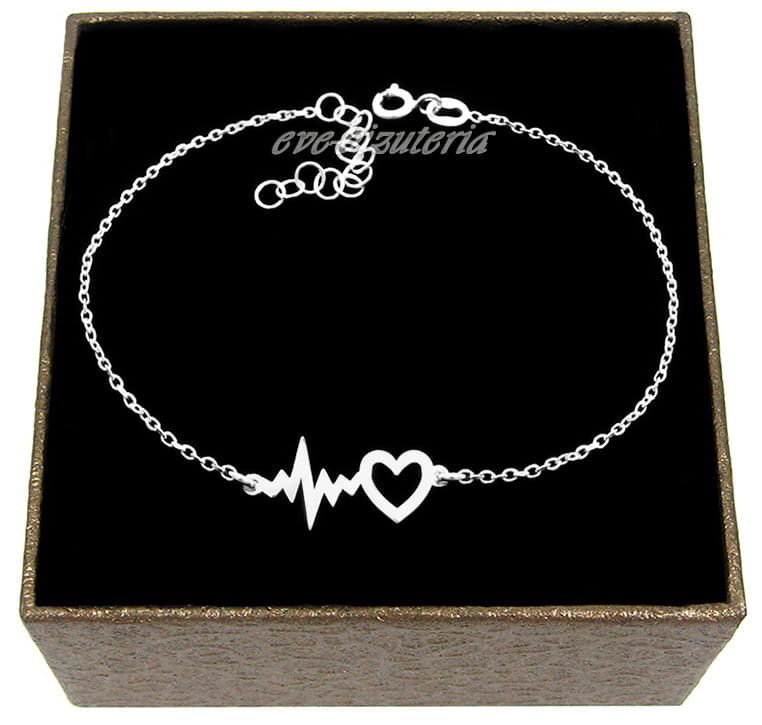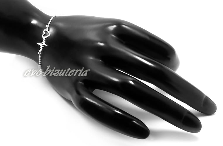 Bransoletka z lśniącą zawieszką w kształcie serduszka połączonego z linią życia, wykonana ze srebra próby 925 rodowanego, odpornego na przebarwienia powierzchniowe. Zawieszka zamocowana na łańcuszku oczkowym typu Ankier z regulowaną długością zapięcia.