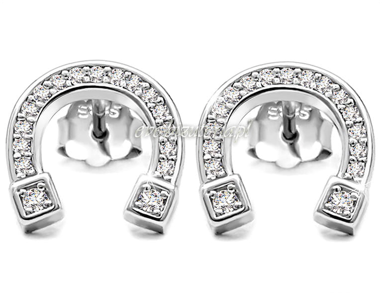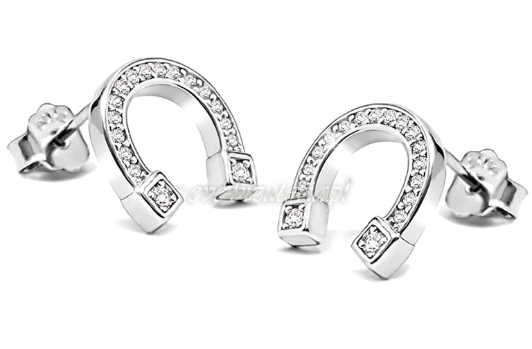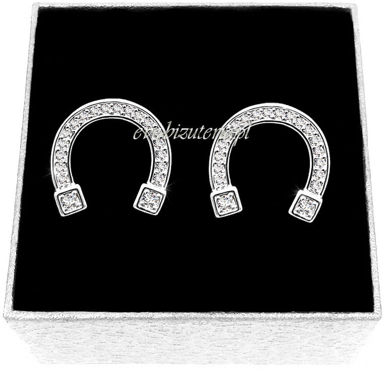 Błyszczące kolczyki srebrne typu sztyft z motywem podkowy, wysadzane białymi cyrkoniami. Kolczyki wykonane ze srebra próby 925 rodowanego, odpornego na przebarwienia powierzchniowe. Szczerze polecamy.