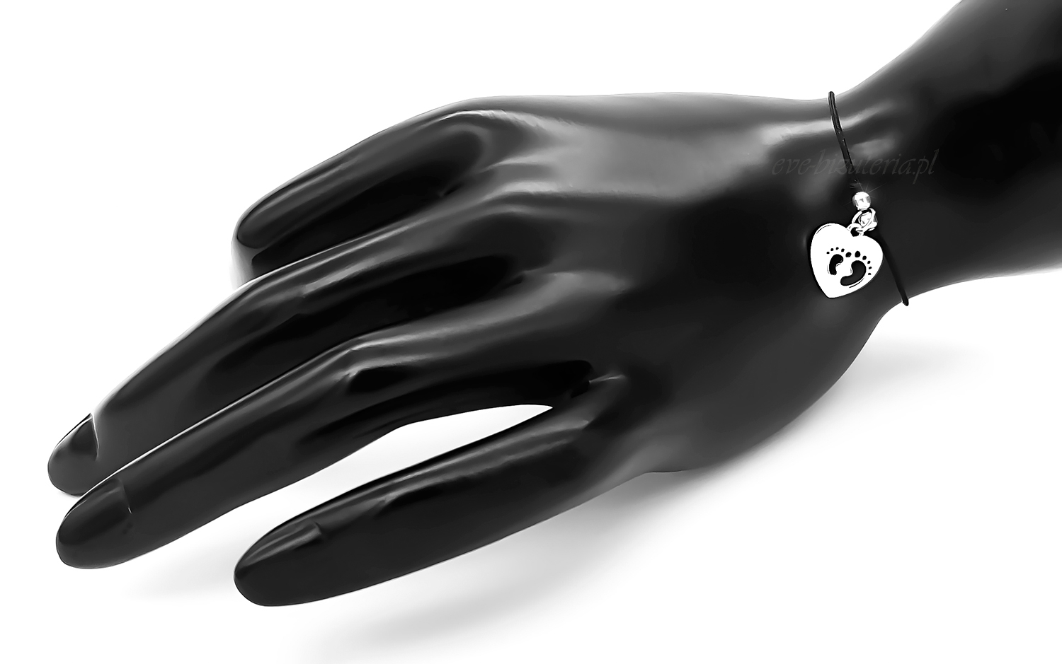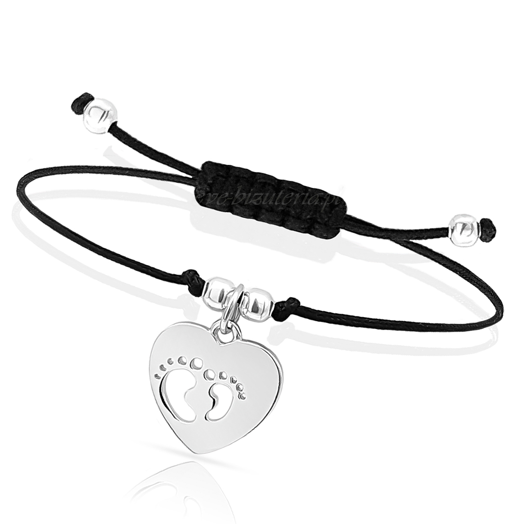 Srebrna bransoletka sznurkowa Serce Stópki B95